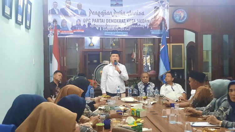 Medan, poindonews.com | Jum'at 31/10 DPC Partai Demokrat Kota Medan mengadakan pengajian rutin Annisa untuk meningkatkan tali silaturahmi antara kader-kader Partai Demokrat bertempat di Kantor DPC Partai Demokrat Kota Medan Jalan Mangkara No. 55. Acara ini menjadi salah satu bentuk upaya partai untuk mempererat hubungan antar sesama kader sekaligus memperkuat nilai-nilai kebersamaan dan keagamaan dalam menjalankan aktivitas.
