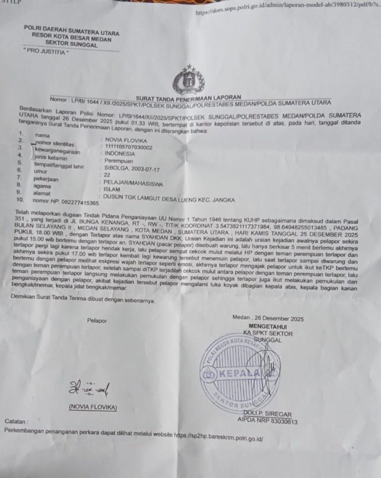 Tidak hanya itu, terlapor yang merupakan tunangan korban juga disebut-sebut telah beberapa kali melakukan tindakan kekerasan sebelumnya terhadap korban. Bahkan, terlapor pernah membuat perjanjian tertulis yang menyatakan tidak akan mengulangi perbuatannya kembali. Dalam surat perjanjian tersebut disebutkan bahwa apabila di kemudian hari terlapor kembali melakukan kekerasan terhadap korban, maka ia bersedia untuk dituntut secara hukum. Dokumen perjanjian tersebut juga telah diserahkan kepada penyidik maupun Kanit di Polsek Sunggal sebagai bagian dari bukti tambahan.