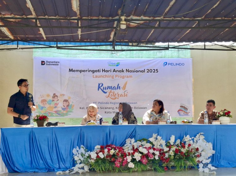 MEDAN, poindonews.com- PT Pelindo Regional 1 berkolaborasi dengan Human Initiative melaksanakan kegiatan Launching Program Rumah Literasi sekaligus pemberian bantuan paket sekolah untuk 50 anak dhuafa di Kelurahan Belawan Sicanang pada Kamis, (31/7/2025).